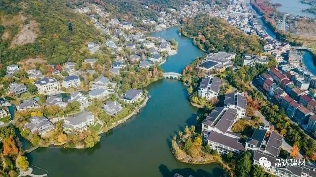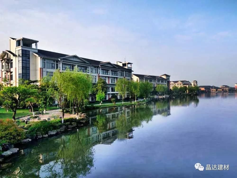 從天空俯瞰,成行灰瓦依水而建,明暗交錯亂中有序,與對岸別墅群遙相輝映,共同構(gòu)建出一幅氣勢恢宏的現(xiàn)代江南民居圖。
